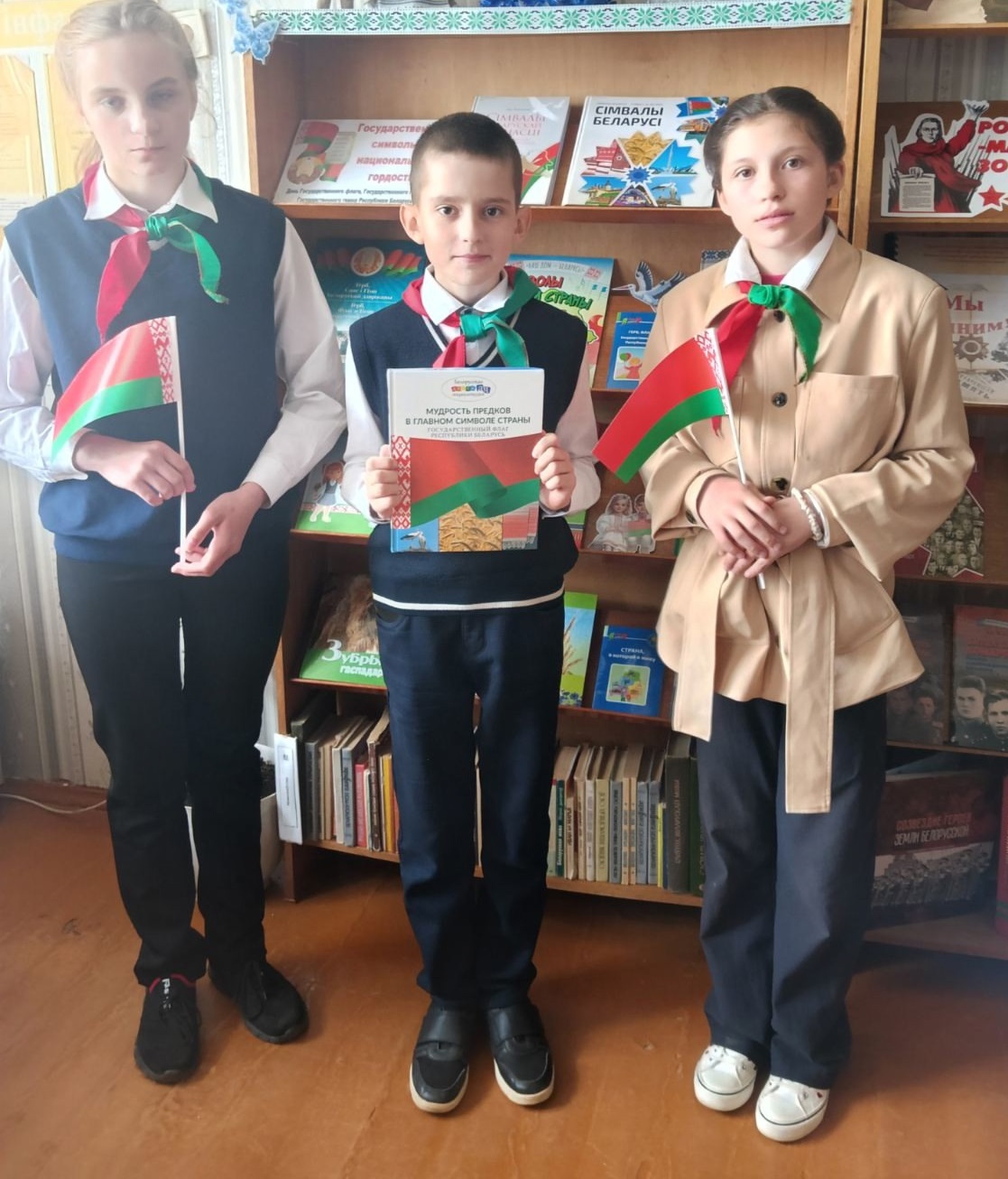 12 мая в Романовичской сельской библиотеке прошёл познавательный час «Символика родного края». В ходе мероприятия ребята узнали, для чего нужна государственная символика, что обозначает каждая составляющая часть герба, какой смысл несут в себе три цвета белорусского флага, в каких случаях звучит гимн и как правильно вести себя при его звучании и исполнении. Далее ответили на вопросы викторины «Белорусская государственная символика» и познакомились с тематической выставкой «Государственные символы – национальная гордость».