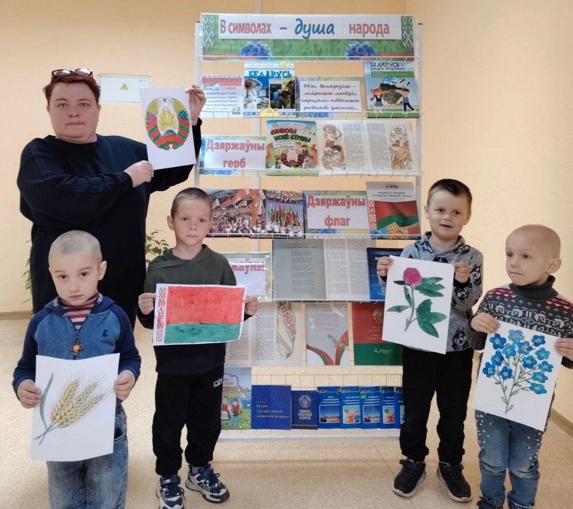 10 мая для юных читателей в Маховской сельской библиотеке прошло литературно-патриотическое путешествие «Символы родной земли» по книге «Символы моей страны». В ходе мероприятия ребята в игровой форме узнали об основных государственных символах страны, поиграли в дидактическую игру «Собери из частей» и народную игру «Ленок», далее нарисовали символы родной Беларуси. В завершение мероприятия посетили площадку Государственной символики в агрогородке Махово. К праздничной дате в библиотеке оформлена тематическая выставка «В символах – душа народа».