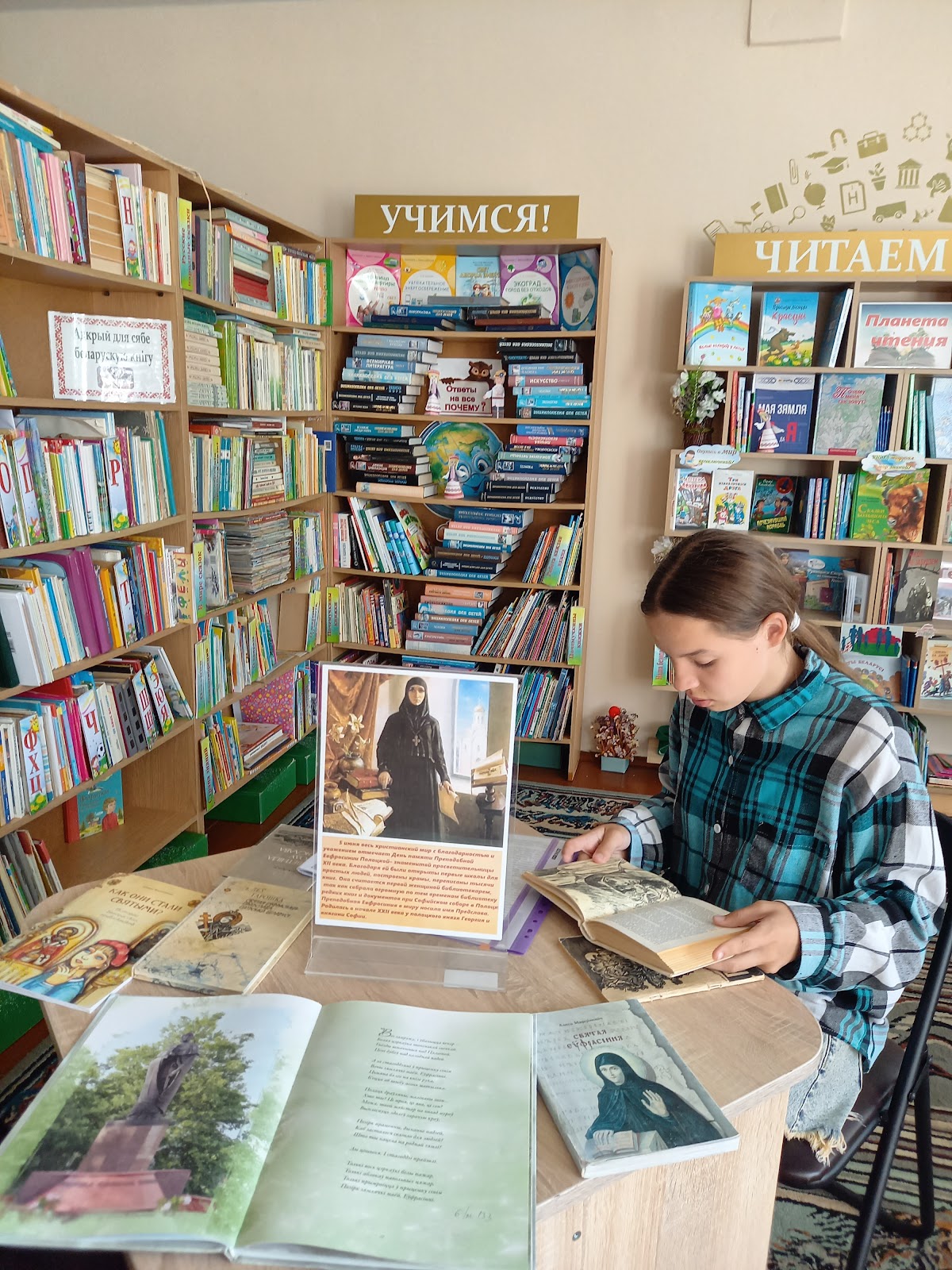 5 июня в Речковской сельской библиотеке состоялся тематический час «Светает светом через темноту веков, святое имя – Евфросиния!». Библиотекарь рассказала присутствующим о жизненном пути святой Ефросинии Полоцкой, её роли в создании библиотеки при монастыре и о создании Креста для Евфросинии Полоцкой. К мероприятию была оформлена тематическая выставка о белорусской святой и её подвижнической деятельности.