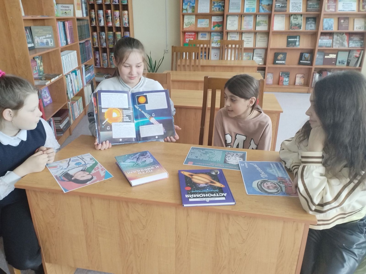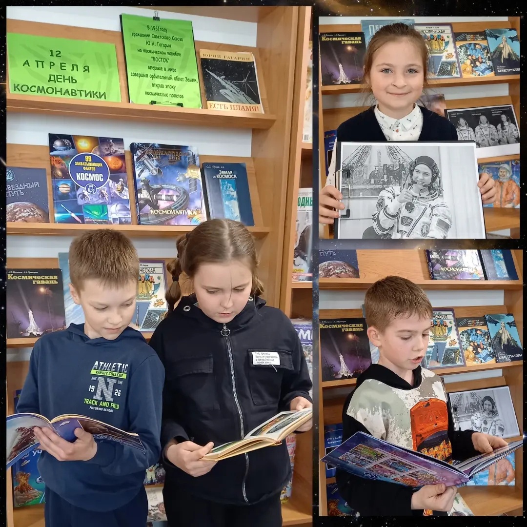 12 апреля в Кадинской сельской библиотеке для учащихся 4-го класса прошёл познавательный час «Покорители космоса». Ребята познакомились с книгами, посвящёнными космосу, ответили на вопросы викторины «Удивительный мир космоса», отгадали загадки на тему космоса. К мероприятию была подготовлена тематическая выставка «Дорога в космос!».