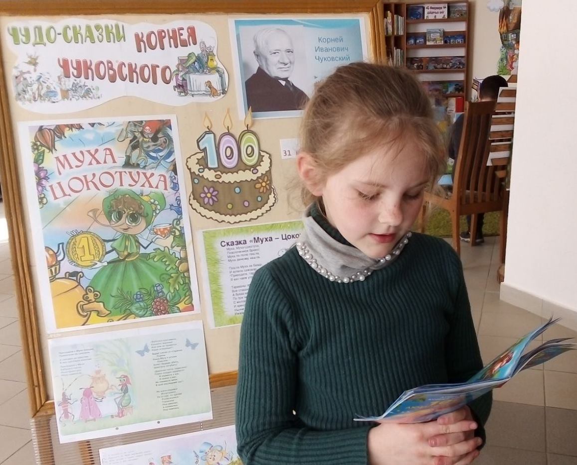 27 марта для детей школьного оздоровительного лагеря «Калейдоскоп» ГУО «Маховская средняя школа» в Маховской библиотеке прошёл литературный час «Путешествие в страну Чукондию», к 100 летию со дня издания сказки «Муха Цокотуха». В первой половине дня дети самостоятельно знакомились с произведениями Корнея Чуковского. А помогла им в этом книжная выставка «Чудо сказки Корнея Чуковского», оформленная в группе школьного лагеря. Во второй половине дня ребята посетили сельскую библиотеку и приняли активное участие в проведении литературного часа. Библиотекарь познакомила детей с биографией писателя. На встрече дети делились впечатлениями о прочитанных сказках Корнея Ивановича, прочитали и рассказали наизусть отрывки из его книг. Далее библиотекарь прочитала произведение К.И.Чуковского «Муха-Цокотуха», а ребята нарисовали рисунки по сказке. Мероприятие прошло интересно и познавательно.