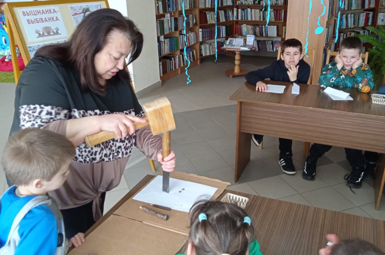 28 марта библиотекарь Маховской сельской библиотеки в этнографической комнате для детей школьного оздоровительного лагеря «Калейдоскоп» провела час фольклора «Вясну-красну сустракаем». Дети послушали и обсудили рассказ «Берасцянкі» из книги А.И.Саченко «Да бабулі на вёску». Познакомились с традициями и обычаями праздника «Саракі». Послушали народные песни «Жавароначкі, прыляціце», «Ой вясна-красна» в исполнении Ульяны Федосенко. Поиграли в народную игру «Птичий хоровод». В творческой части занятий, преподаватель объединения по интересам М.И.Игнатенко, показала мастер-класс по изготовлению птиц в технике «Вытинанка». Изюминкой мероприятия было участие детей в создании вытинанки-выбиванки. С первого раза ребятам было сложно понять, как правильно держать молоток и ставить стамеску, тяжело рассчитать силу удара, но все очень старались и справились с изготовлением вытинанки-выбиванки.