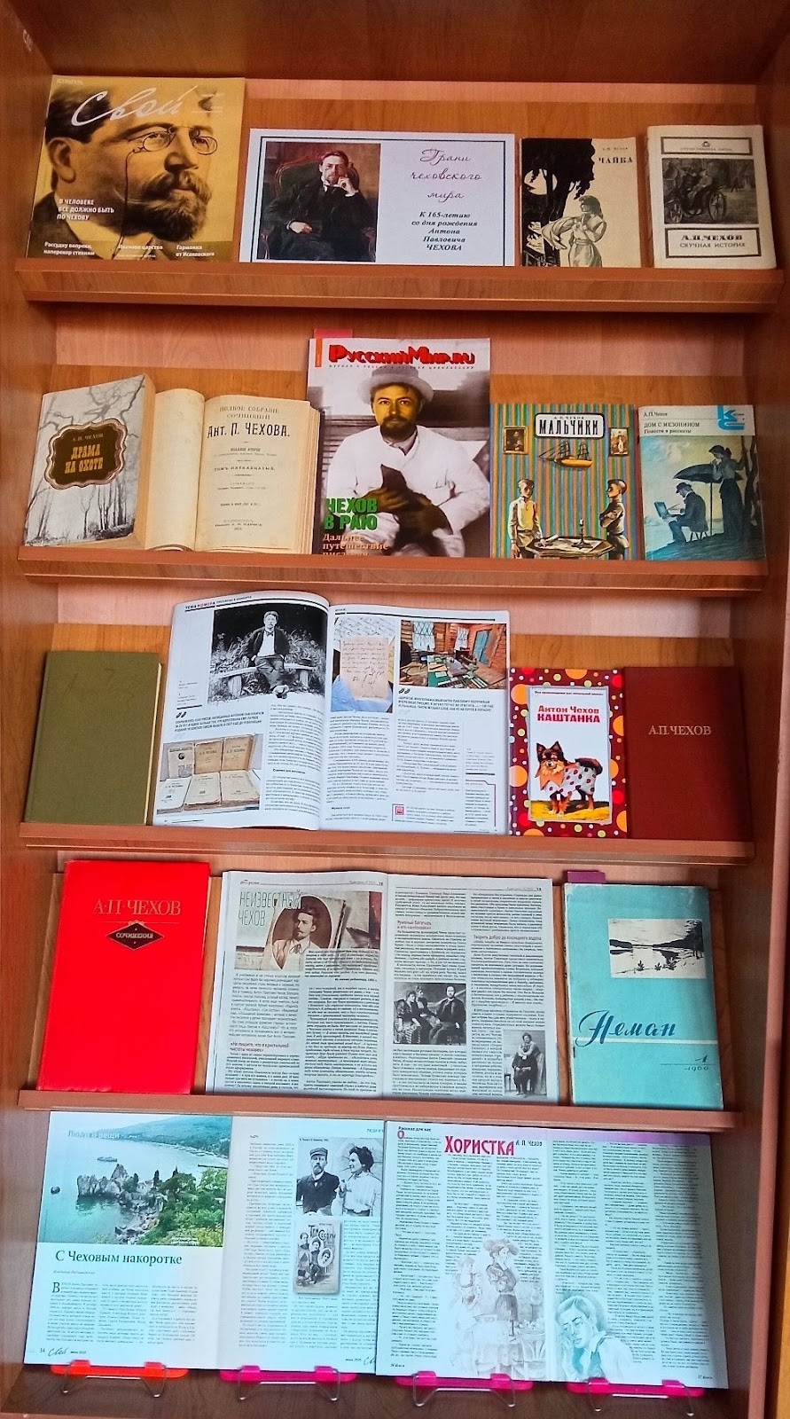 29 января в Брылёвской сельской библиотеке-клубе к 165-летию со дня рождения одного из самых известных русских писателей и драматургов Антона Павловича Чехова оформлена книжная выставка «Грани чеховского мира». На ней представлен широкий спектр книг из фонда библиотеки, а также книжный раритет из личной коллекции библиотекаря – том из прижизненного издания полного собрания сочинений А.П.Чехова издательства А.Ф.Маркса (г.Санкт-Петербург, 1903 г.).