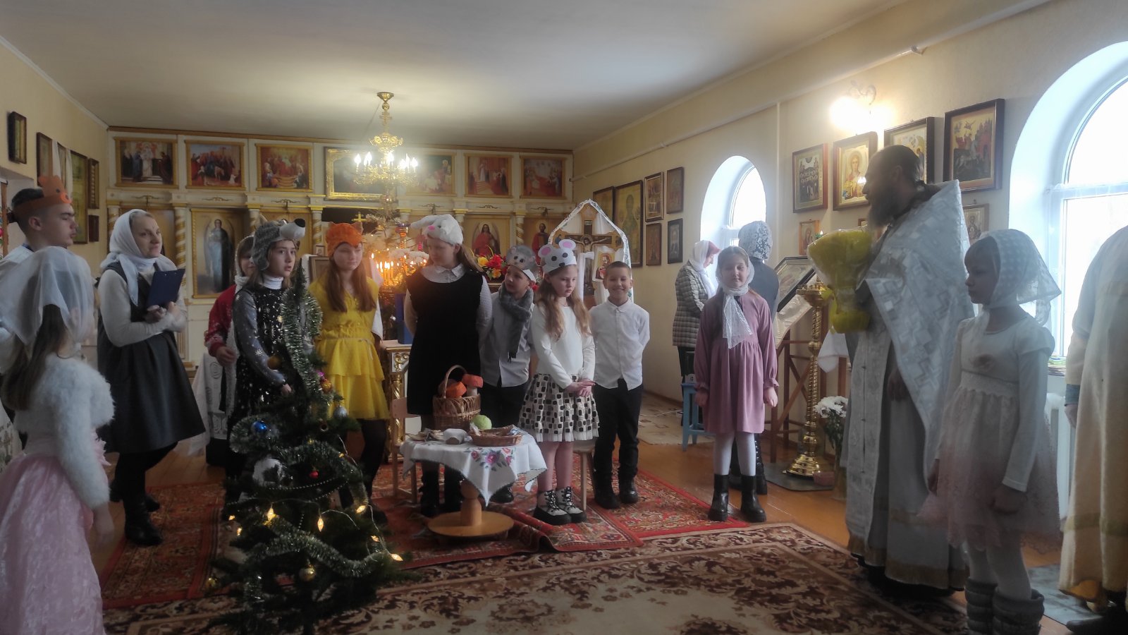 7 января в храме святых апостолов Петра и Павла агрогородка Махово для прихожан прошёл спектакль «Рождественский теремок». Краткий сюжет спектакля: юные актёры – лесные звери готовятся к встрече Рождества: моют, убирают, пекут пироги. Одна ёлочка в лесу плачет, яркой и нарядной в этот вечер ей хочется быть. Зверята помогают ёлочке, украшают её игрушками, а прилетевшие Ангелы дарят ёлочке небесные звёздочки. Объясняют, что в жизни дело ведь не в платье и красоте, всего прекрасней – доброта. Наставляют зверей быть вежливыми, не ленится, не хитрить и время даром не терять. В завершение мероприятия отец Николай поздравил всех с праздником и вручил участникам мероприятия рождественские подарки.