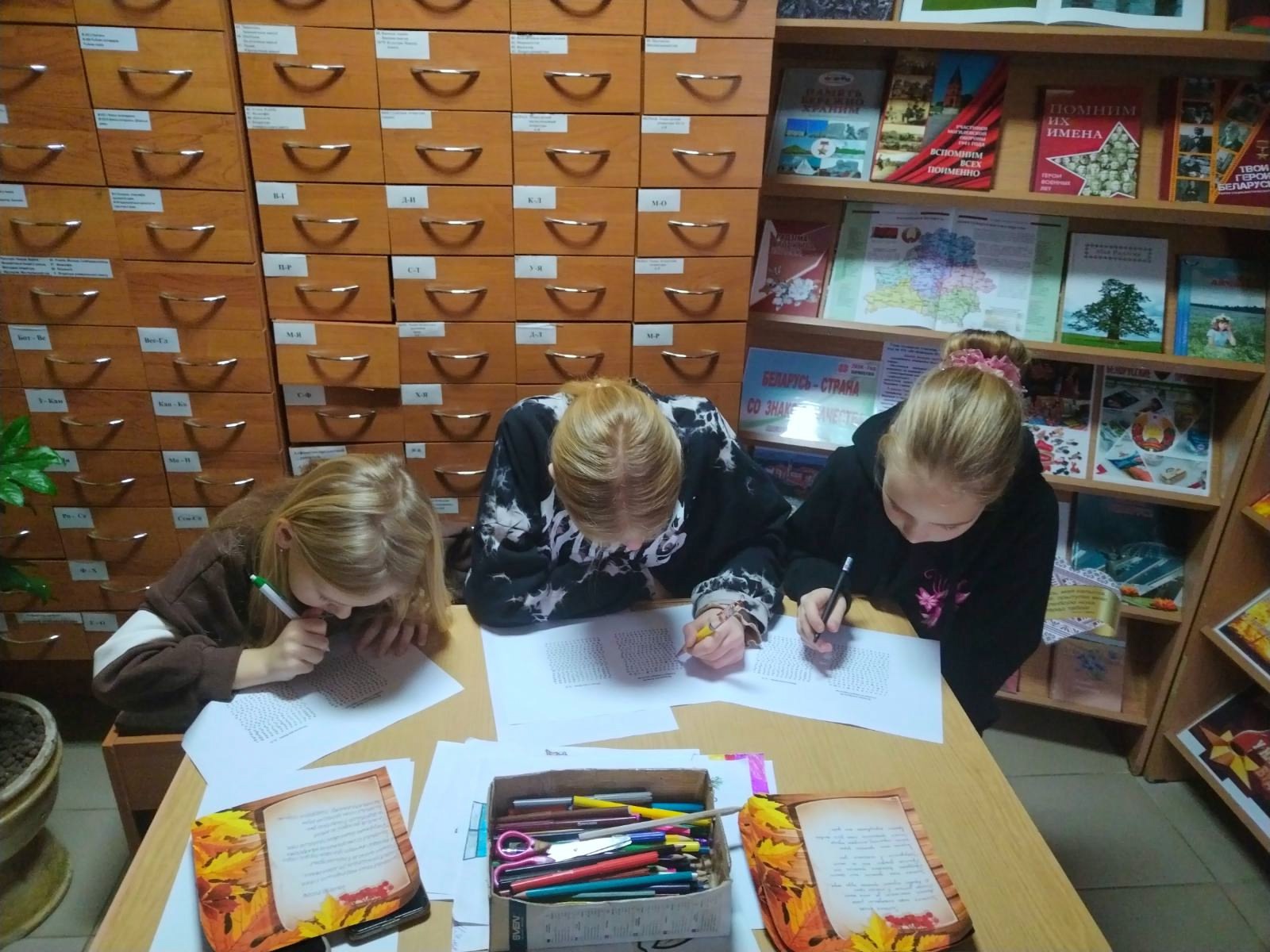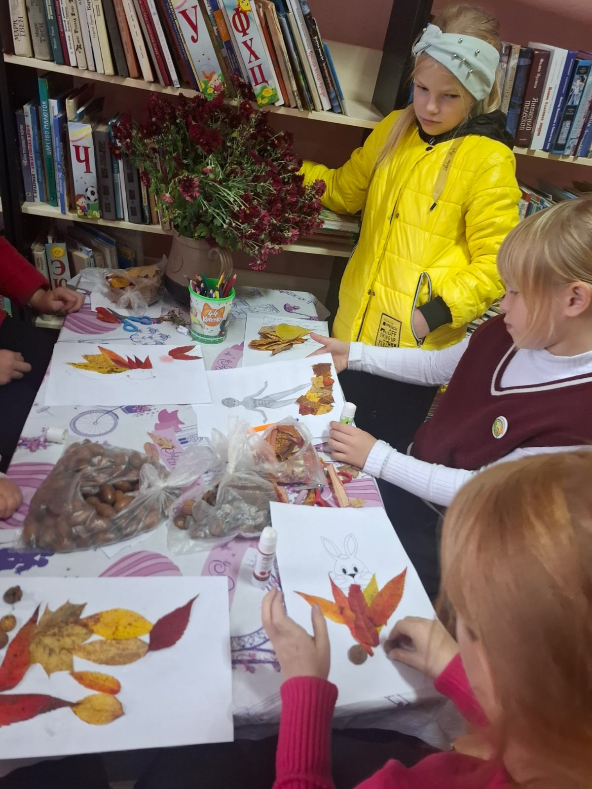 1 ноября в центральной библиотеке прошла литературная гостиная «Весёлая осень в библиотеке». Библиотекарь рассказала присутствующим о золотом времени года, и о том, как животные, птицы, люди готовятся к зиме. Далее дети приняли участие в конкурсах: «Спрятанное слова», «Обведи и напиши», «Краски осени найди». В завершение мероприятия ребята сочинили стихотворения про осень и прочитали его.