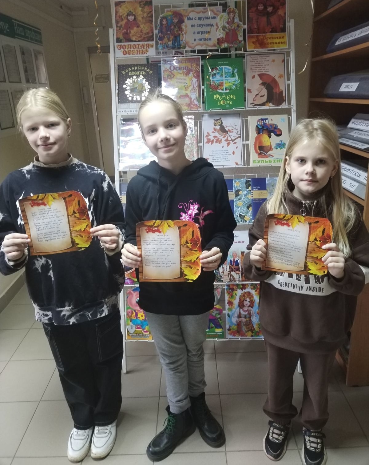 28 октября в центральной библиотеке начало осенних каникул отметили конкурсно-игровой программой «Путешествие в страну непрочитанных книг». Юные читатели вспомнили об осенних месяцах, о приметах осени, ответив на загадки. Далее приняли участие в литературной викторине «По страницам любимых книг», играх и конкурсах: «Осенние слова», «Сложи картинку», «Разгадай школьные ребусы». В завершение мероприятия состоялся конкурс рисунков «Краски осени».